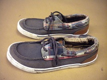 Clothing: White T-Shirt with "Virginia Beach Virginia" and a pink flower on the front, size small Blue denim jeans Black bra, size 368 Footwear Navy/plaid boat canvass shoes, size Boys 4