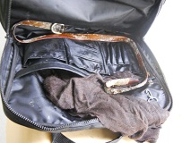 Additional Personal Items: Black 'High Sierra' nylon briefcase containing: empty bottles of Dasani Raspberry water, Poland Springs water, Cranberry Juice. Two spray cans of 'OFF' insect repellant, a brown sweater, size medium.