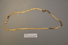 Jewelry: Yellow chain necklace; Coca Cola brand watch, plastic black band, found around right wrist.